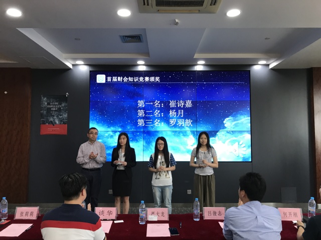 6月21日中午,会计学院“天生我财,会人一步”首届财会文化节闭幕式在信息楼503举行。校党委宣传部部长、学工部部长严大龙,会计学院党委书记谈华、党委副书记张莉莉、中博诚通上海分公司总经理吕俊志、会计学院专业教师毕超和何开刚、工商管理学院团委书记于伟伟、会计学院团委书记朱红艳、金融管理学院团委副记江昊等参加了本次活动。