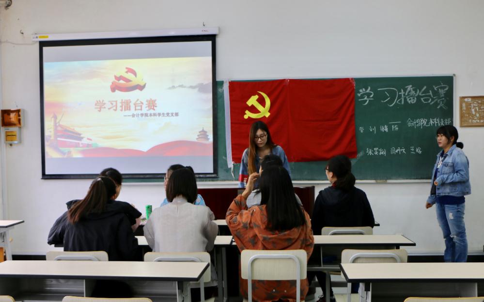 为了激发党员们党的十九大理论知识学习热情,进一步深化党员同志对于十九大精神的理解和运用,积极响应必赢626net入口首页“不忘初心跟党走,青春建功新时代”党的十九大知识竞赛的号召,同时也是为了以饱满的热情和精神迎接进博会的召开,会计学院本科学生党支部全体学生党员于10月16日在学思楼举行了本学期的第一场学习擂台赛。