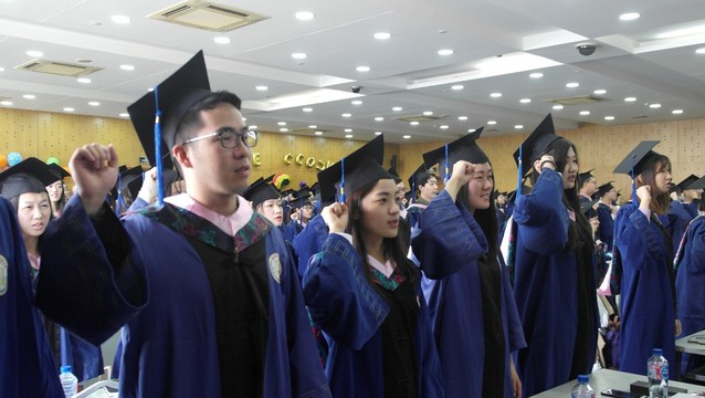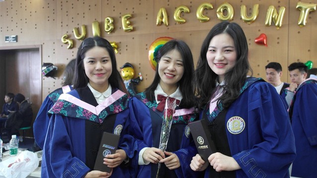 毕业典礼当天同时举行了会计学院研究生诚信宣誓、集体合影等仪式。