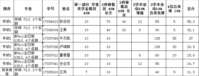 以下表格为各项打分,如有疑惑,可在公示期内到乐群楼210 谭老师处咨询查验。