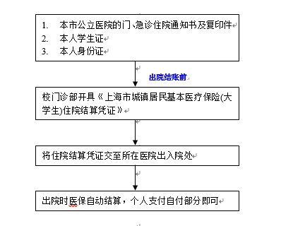 本市住院的同学(本人或委托他人)务必在办理出院手续前,凭入院通知单至校门诊部开具住院结算凭证。