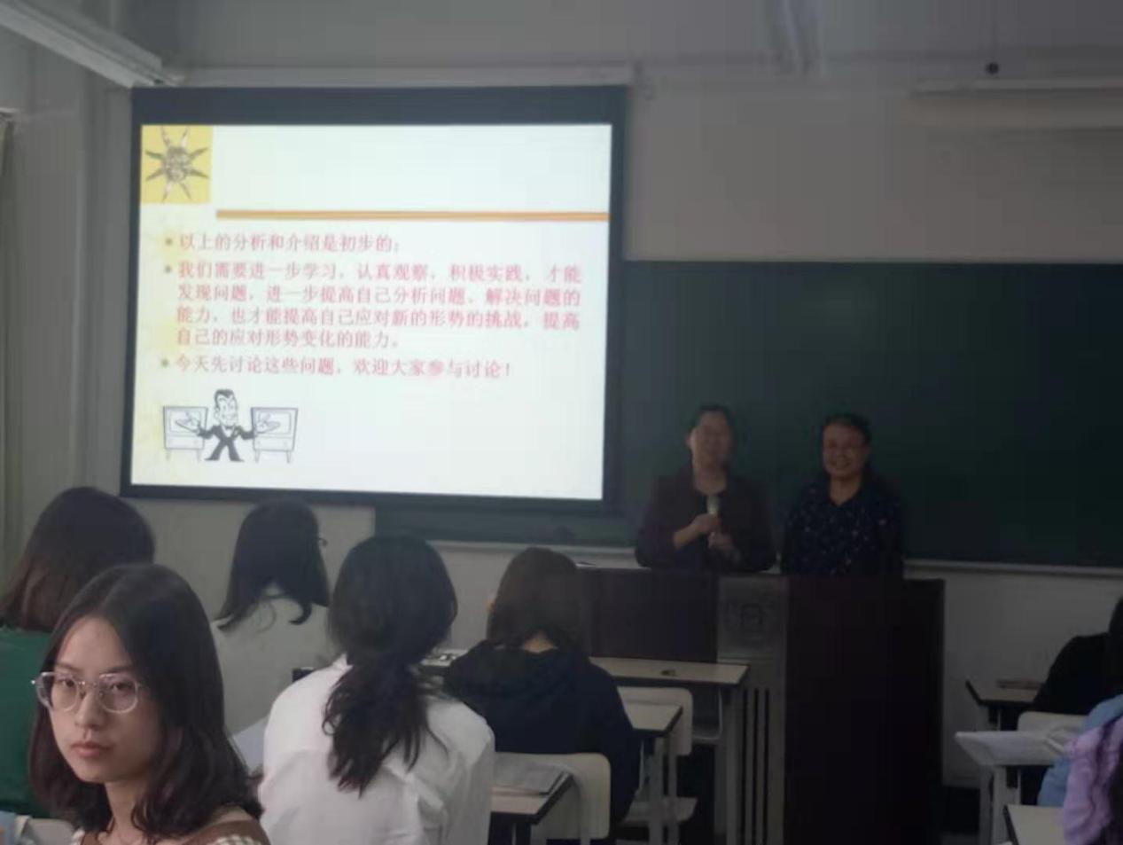 讲座来了将近90个学生,有部分学生因为没有座位,站着听完了整场讲座。李婉丽老师首先介绍了师萍教授的履历,大家报以热烈的掌声。