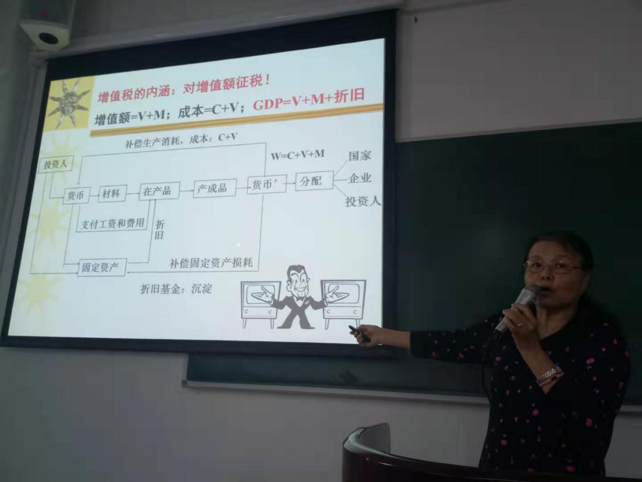 之后,师萍教授从微观方面介绍了营改增以及个税改革的具体实施情况。简单回顾了增值税和个税的计算方法,并通过图表和举例的形式将增值税的内涵清晰的展现出来。主要介绍了个税改革对我们个人的影响,比如子女教育和赡养老人支出等都可以作为专项附加扣除项目在税前扣除,这与我们每个人的生活都是息息相关的。