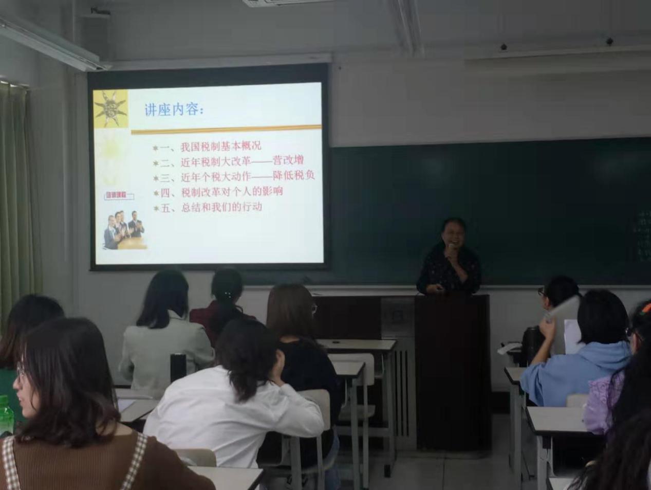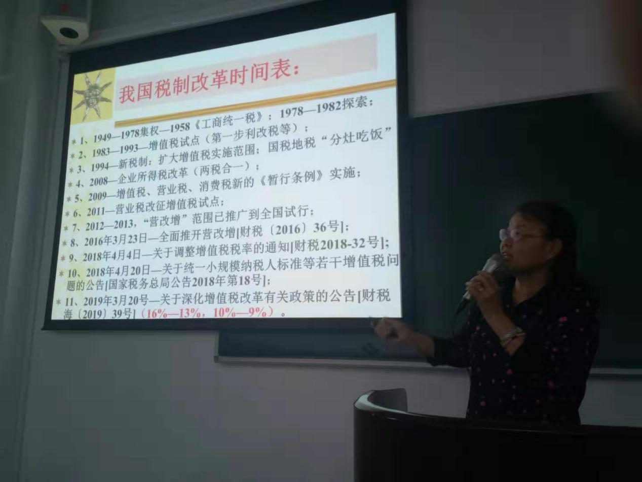 最后,师萍教授提出税收制度与企业和个人都有着很密切的联系,企业应该加强对员工的税务知识培训,加强增值税控制管理体系,对企业进行精细化管理。并且希望大家能够积极学习新的税收改革政策,努力学好专业知识,并祝愿大家早日毕业,为祖国的财会事业添钻加瓦。