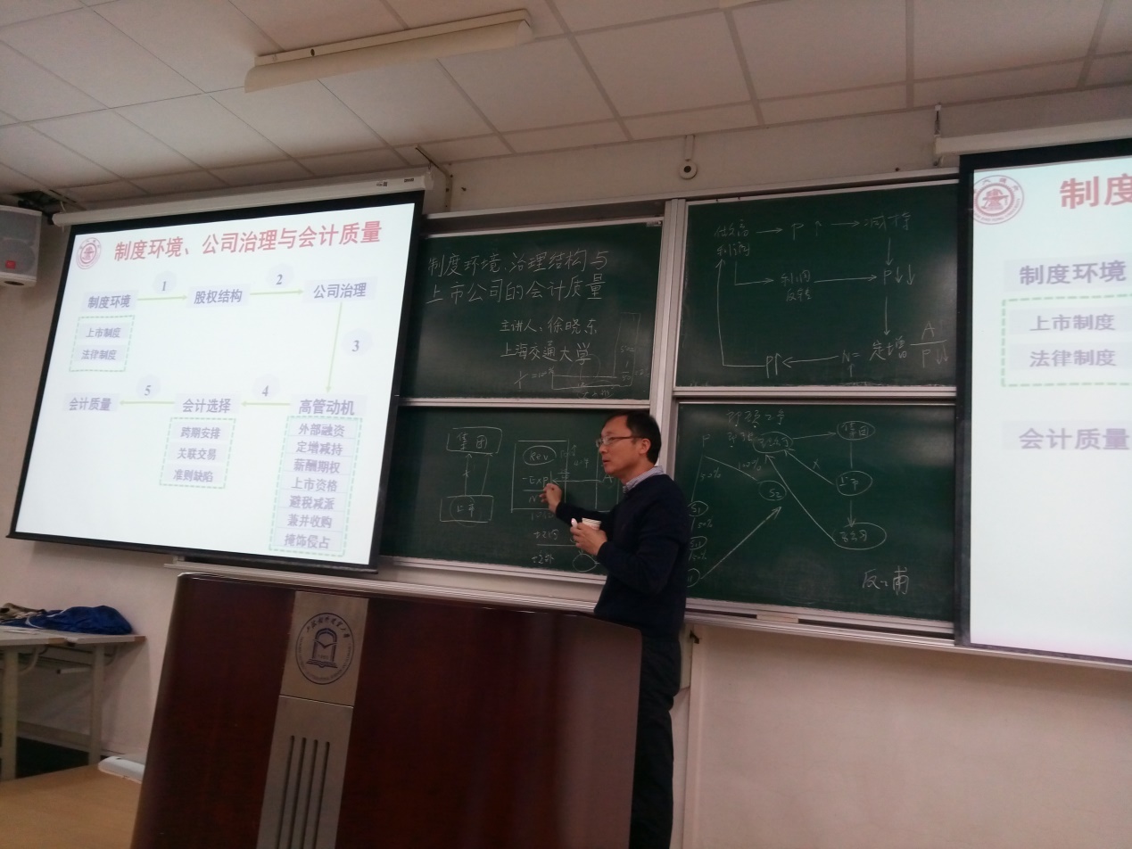 2019126日上午,我院荣幸邀请到上海交通大学安泰经济与管理学院徐晓东教授,为我院师生举办了一场主题为“制度环境、治理结构与上市公司的会计质量”的精彩讲座。会计学院杨慧辉教授、陈丽英副教授、孟怡珺博士、宣扬博士参与了此次讲座。