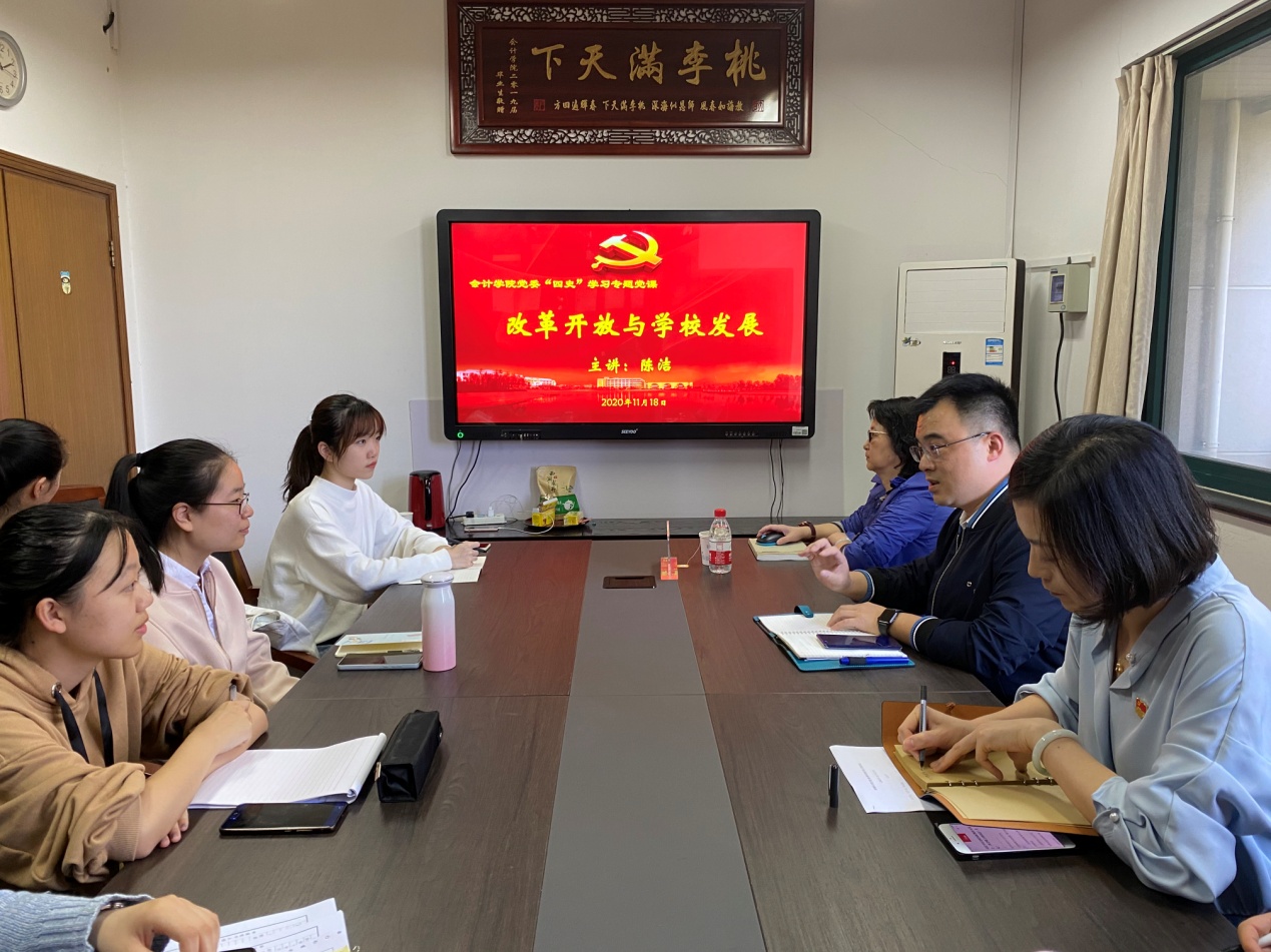 为深入贯彻落实校党委关于“四史”学习教育的要求,进一步建立健全“不忘初心、牢记使命”主题教育长效机制,11月18日下午副校长陈洁为会计学院师生作了题为《改革开放的当代启示》的专题党课。会计学院全体班子成员、各党支部书记及学生代表到场学习。