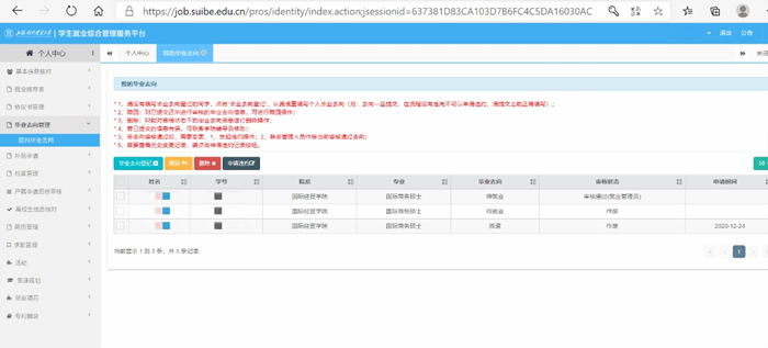 1. 登录www.firstjob.com.cn网址——网上办事——学生事务——去向登记,毕业生激活账号,选择个人信息管理-》就业方案填报