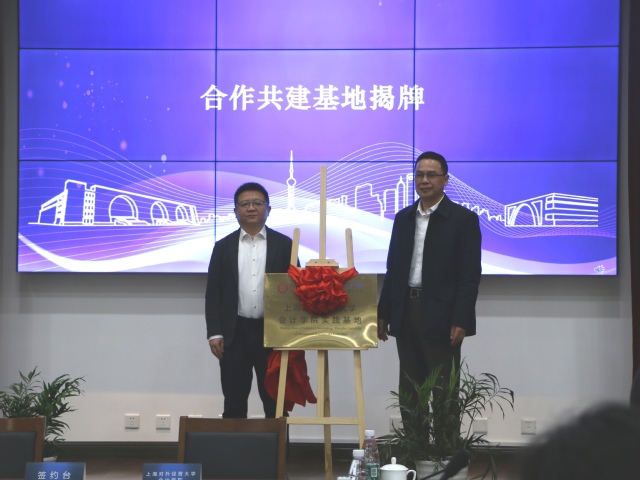 在合作共建实践基地签约仪式上,谈华代表会计学院分别与浪潮集团高校事业部总经理张明、上会会计师事务所合伙人陈文龙签署了实践基地产学研合作协议。徐永林与企业代表共同为实践基地揭牌。