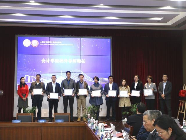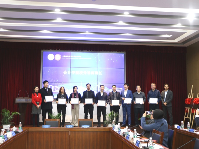 杨慧辉、孙淑伟为新聘任的校外导师颁发聘书。此次新聘任的校外导师共计19位,涵盖了多家会计师事务所、上海市会计学会证券市场工委、上海市审计局、证券、基金、科创企业等金融机构和产业集团的高级管理人员。