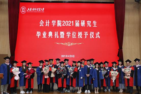 4月9日下午,我院2021届研究生毕业典礼暨学位授予仪式在松江校区新图书馆思源报告厅举行。必赢626net入口首页副校长、会计学院院长徐永林、会计学院党委书记张嵘、副院长杨慧辉、张天舒、孙淑伟出席了毕业典礼。硕士生导师代表、全体硕士毕业生共同参加本次典礼。典礼由会计学院党委副书记张晴晴主持。