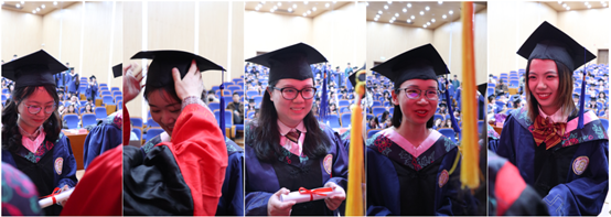 学位授予仪式上,会计学院导师们为全体毕业生一一拨穗,并授予毕业贺信。