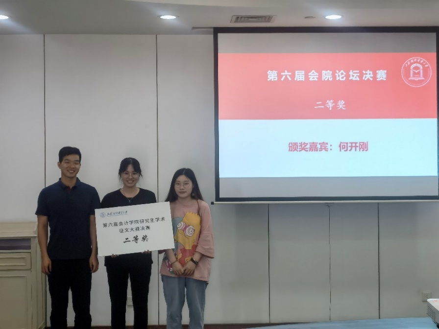 第六届“学术为魂,见证未来”会院论坛学术征文大赛决赛从4月开始向校内外发布,6月初截稿时共收到来自不同高校不同专业的学术论文、案例研究等投稿23份。会计学院邀请上海财经大学、西南财经大学、上海大学等知名高校的科研骨干,为所有投稿进行双盲评审后,共有11份进入决赛。决赛中,11位选手通过ppt展示、校内专家提问与现场答辩展现了自己的研究内容。最后,结合校外评审和校内专家现场打分,会计学院2019级审计学刘杨冰儿同学的《CEO任期与企业融资约束研究》一文以最高分荣获本届大赛一等奖,会计学院会计专硕陈海然、金融学院金融专业的胡耀元等5名同学分获二、三等奖。
