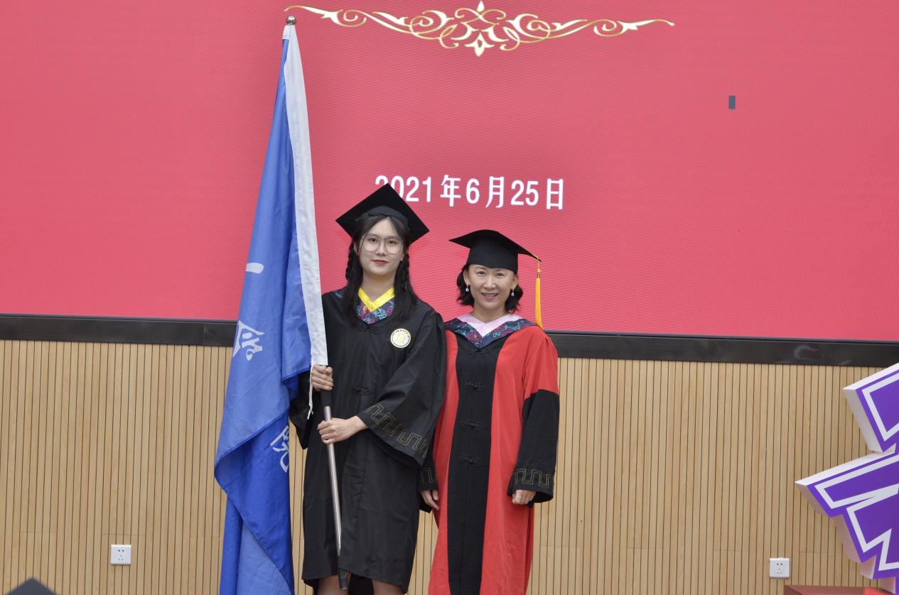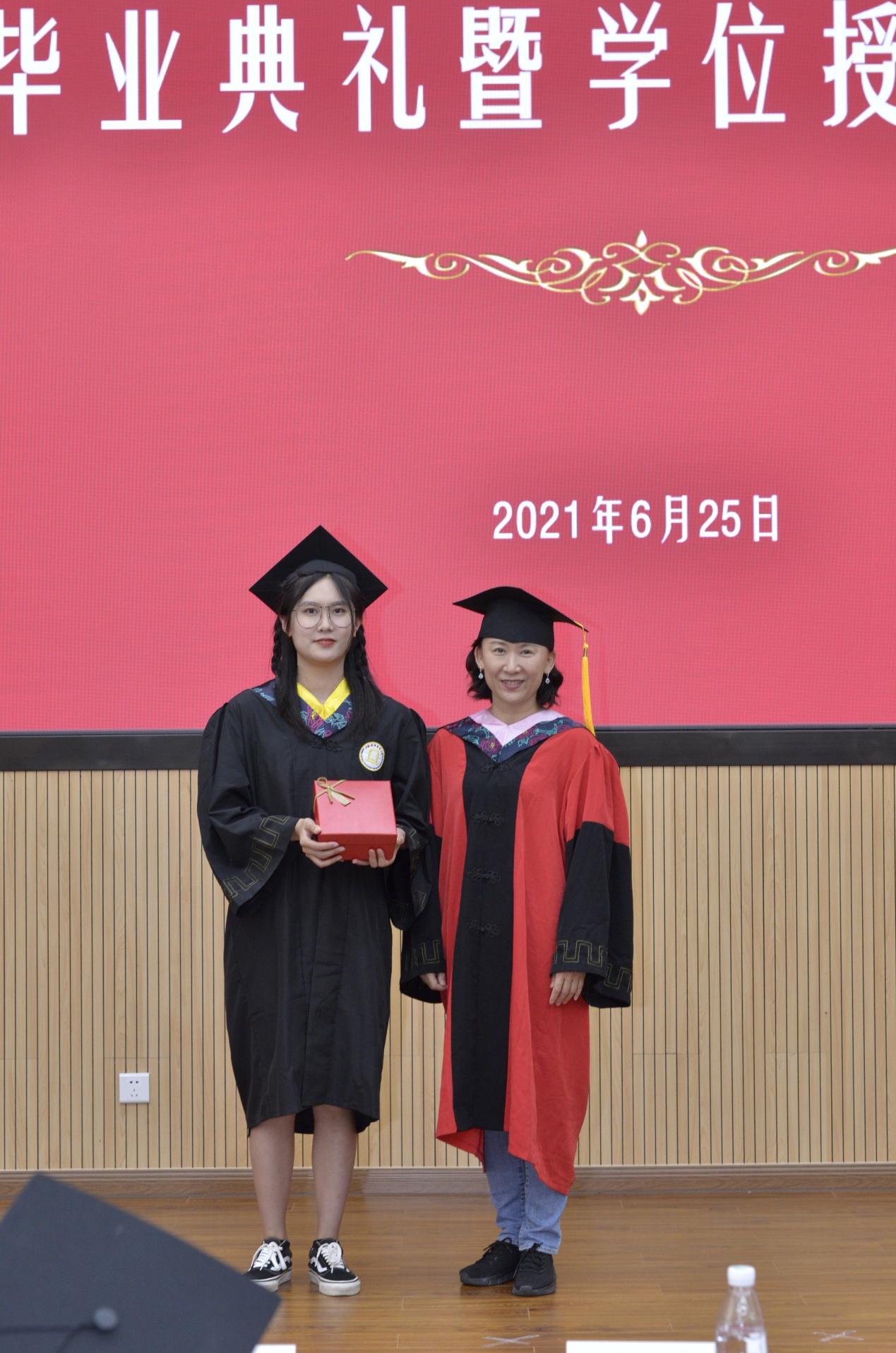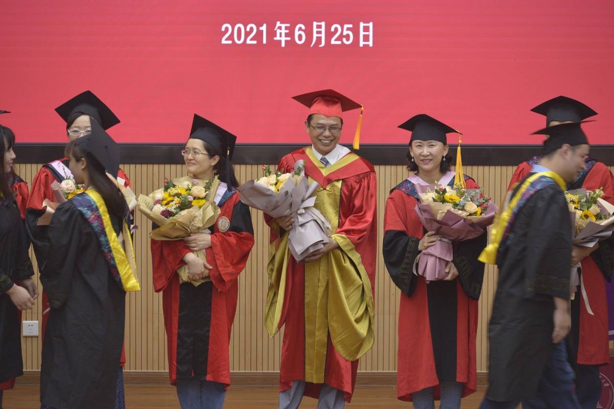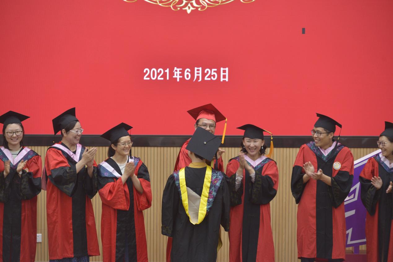 学院教师代表为毕业生拨穗,并颁发毕业证书和学位证书。毕业生代表也向知识门下“传播知识、传播思想、传播真理”的老师们献花表达感恩之情。