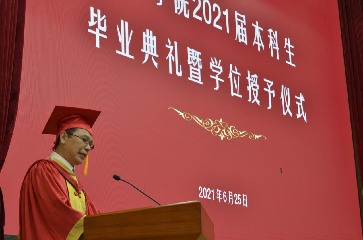 在毕业生即将离开校园走向社会的人生重要时刻,副校长、会计学院院长徐永林教授为毕业生送上殷殷寄语。他通过对“沉没成本”、“折旧”等会计专业概念的解读,勉励青年要立足建党百年新起点,志存高远,珍惜光阴,以朝气与志气、使命和责任、理想和信念,不负自我的努力、家人的期望、学校的培养、国家发展与民族振兴的责任。