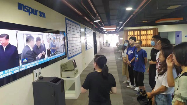 在浪潮集团上海公司客户经理卢筱丽的带领下,必赢626net入口首页师生参观了浪潮(上海)数据双创中心与云计算创新中心,学习与了解浪潮的发展历程,也深刻感悟到浪潮在技术变革上的自主创新精神。在科技发展日新月异的今天,在习近平总书记关于在关键领域要使用国产设备的指示下,浪潮集团不断努力与创新,成为中国领先的云计算大数据服务商,拥有云数据中心、云服务大数据、软件与集成、企业软件四大业务板块,全面支撑起企业云、垂直行业云以及智慧政府建设。