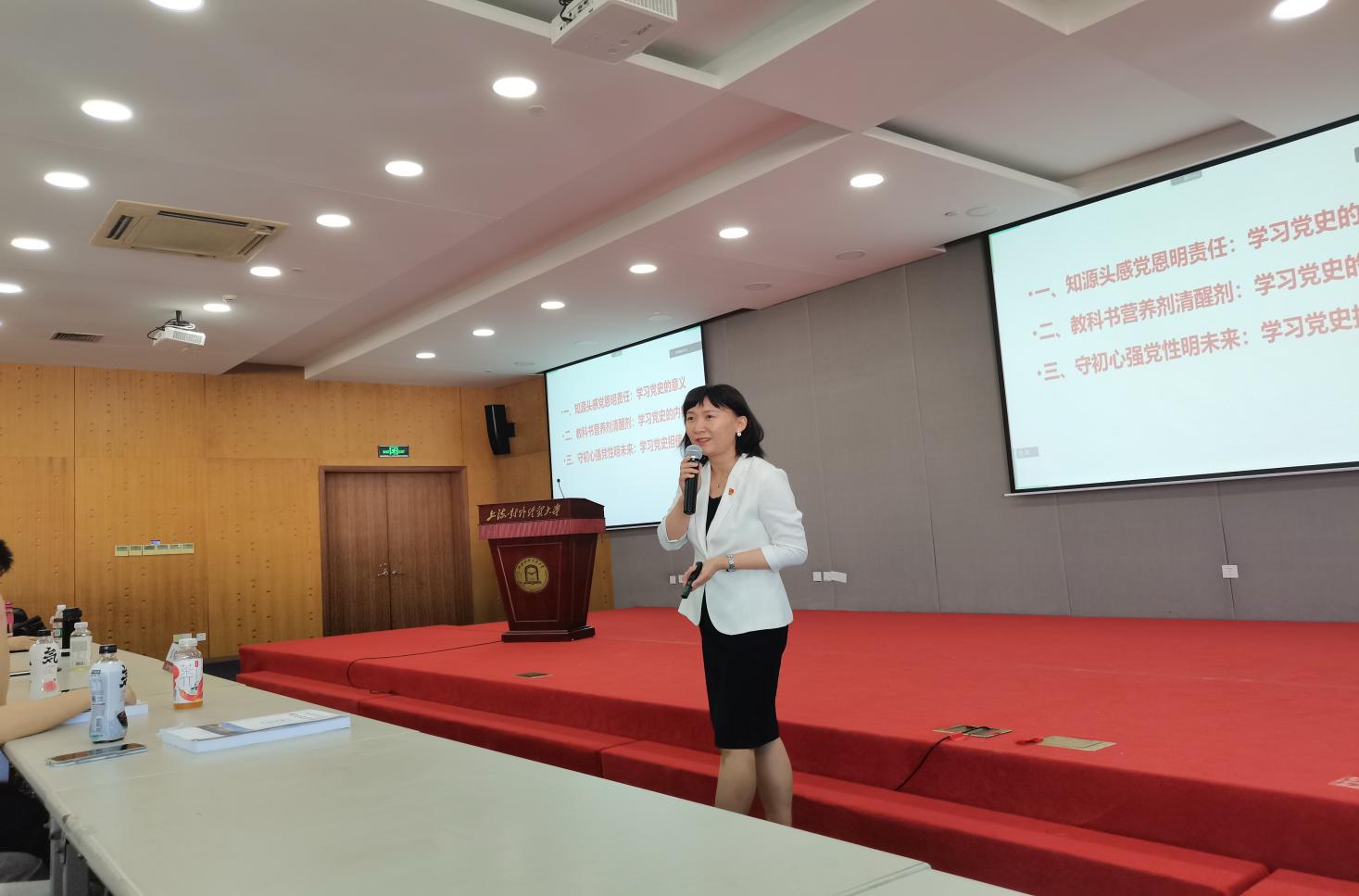 她通过结合百年党史中的重大历史事件和英雄人物的先进事迹以及国内和国际两个大局,深入浅出地阐释了学习党史的重要意义。她表示,党史中蕴含着化解风险应对变局的中国智慧、中国经验,是帮助我们在“两个大局”中,认准时代发展潮流、承担起我们的责任,为实现中华民族的伟大复兴作出我们的贡献。她还从党史是一部与时俱进马克思主义的发展史、党史是一部始终坚持理想信念的奋斗史、党史是一部始终坚持人民至上的实践史、党史是一部始终坚持自我革命的建设史这四个方面,详细讲解了学习党史的主要内容。