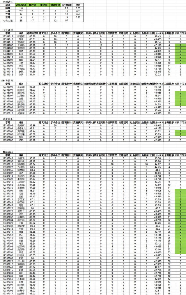 根据《关于做好2019级研究生学业奖学金评选工作的通知》(沪经贸大党学﹝2022﹞10号)要求和《会计学院研究生学业奖学金综合测评考评办法》规定,经过个人自愿申报、学院研究生学业奖学金评定委员会评定,现将会计学院2019级毕业班研究生学业奖学金金拟推荐名单公示如下: