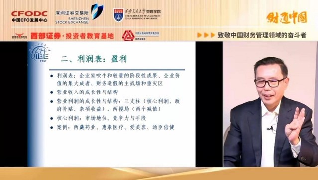 接着,张新民教授介绍了资产负债表及现金流量表的主要关注点。他强调,谈资产负债表不能抛开企业的资源情况,谈现金流量表不能避开自由现金流。企业的不同资源情况催生出不同的发展方式,并购与自创在商誉与无形资产上有着迥然不同的体现。而企业的自由现金流是否“自由”,经营活动现金流量是否充分,可以很好地衡量企业盈利能力。此外,在讲解财务报表的基础上,张新民教授还以西藏药业、惠泰医疗、爱美客、汤臣倍健等几家企业为例,分析了具体的财务报表数据,将理论与实际结合,使之具体化、形象化。