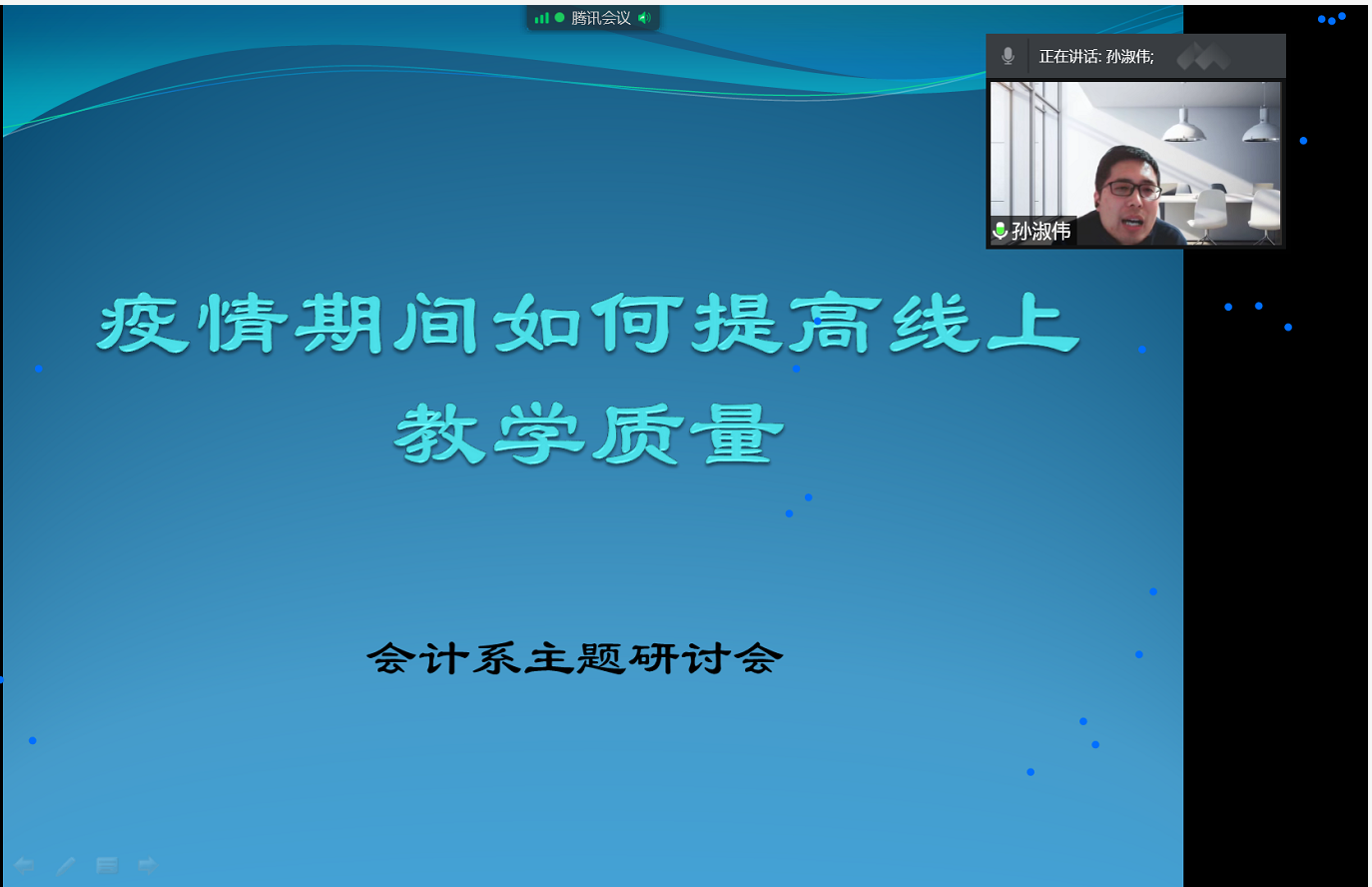 召开教师研讨会,提升教师在线教学技能。为提升教师们进行线上教学的技能,保障在线教学效果,会计系和审计系分别举行了“疫情期间如何提高线上教学质量”主题讨论会。与会教师们探讨了线上授课过程中学生提出的问题,积极分享线上教学经验、直播技术和板书工具使用技巧,相互答疑释惑,反思问题,总结经验