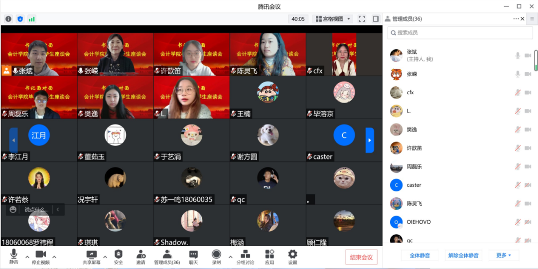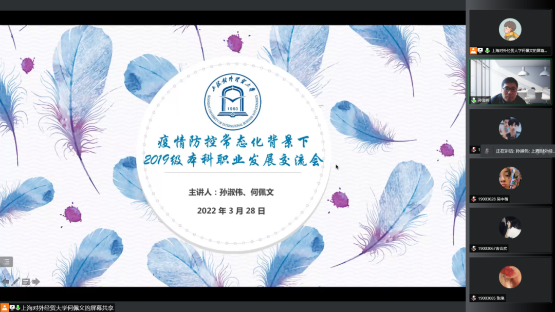 学院副院长孙淑伟担任2019级本科“特殊辅导员”,他结合疫情背景下大三学生的实际需求,就毕业论文开题选题、考研保研、境外留学、线上教学等方面,向全体大三学生进行深入指导,并结合会计学院学生职业发展方向与同学们充分交流。他以自身求学经历及工作经历,鼓励学生建立可持续的个人学习和阅读习惯,从而激发个体学习动能。