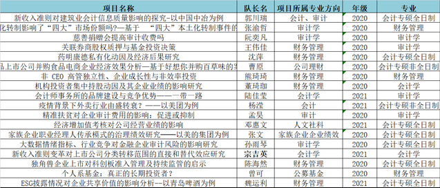 公示:2022年会计学院“毓秀计划”研究生创新项目立项名单公示