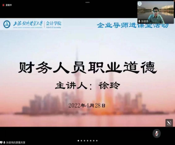 围绕个人发展与职业素养,塑造核心竞争力。上海松江城镇建设投资开发集团有限公司财务总监沈怀龙以《提升财务思维、助力业财融合》为主题,引导大学生提升战略思维,做企业未来价值的引领者和践行者;来自某国有企业的徐玲通过《财务人员职业道德》引导会计学院学子知行合一,真正明晰诚信是会计最重要的道德品质;罗克韦尔自动化有限公司的亚太区财务总监Benson Li以自身发展为例,鼓舞同学们做出科学的学习及职业规划,树立正确的职业价值观、专业观。