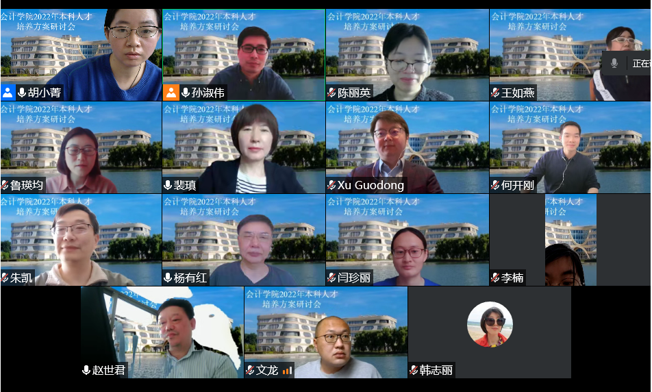 人才培养方案和教学计划是实现人才培养目标和基本要求的总体设计,是组织本科教育教学工作的重要依据。为进一步深化教育教学改革,全面落实立德树人根本任务,促进专业内涵建设,提升人才培养质量,会计学院按照学校的部署和安排,2022521日上午10点通过在线会议的形式召开了“2022年本科人才培养方案研讨会”。出席本次研讨会的校外专家有北京工商大学杨有红教授,上海财经大学朱凯教授,AACSB中国区负责人徐国栋先生。校内出席人员有会计学院院长裴瑱教授、副院长孙淑伟副教授、审计系主任王如燕教授、会计系主任鲁瑛均副教授、学院教学指导委员会主任赵世君教授以及6位教师代表。该会议首先由院长裴瑱教授致辞。接着王如燕教授和鲁瑛均副教授分别对专业培养方案进行介绍。最后由三位校外专家反馈建议。