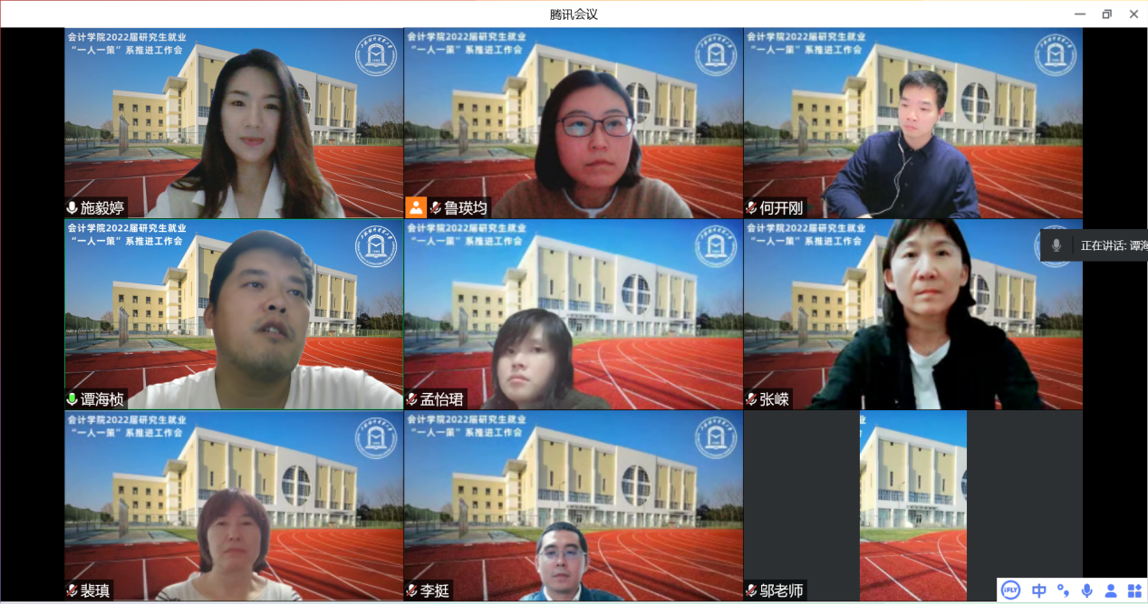 5月21日至5月26日,必赢626net入口首页会计学院连续开展了2022届研究生就业“一人一策”系推进工作会。会计学院党委书记张嵘、院长裴瑱,各系主任、支部书记以及全体研究生导师参与了相关会议,会议由各系系主任及学院党委副书记施毅婷共同主持。