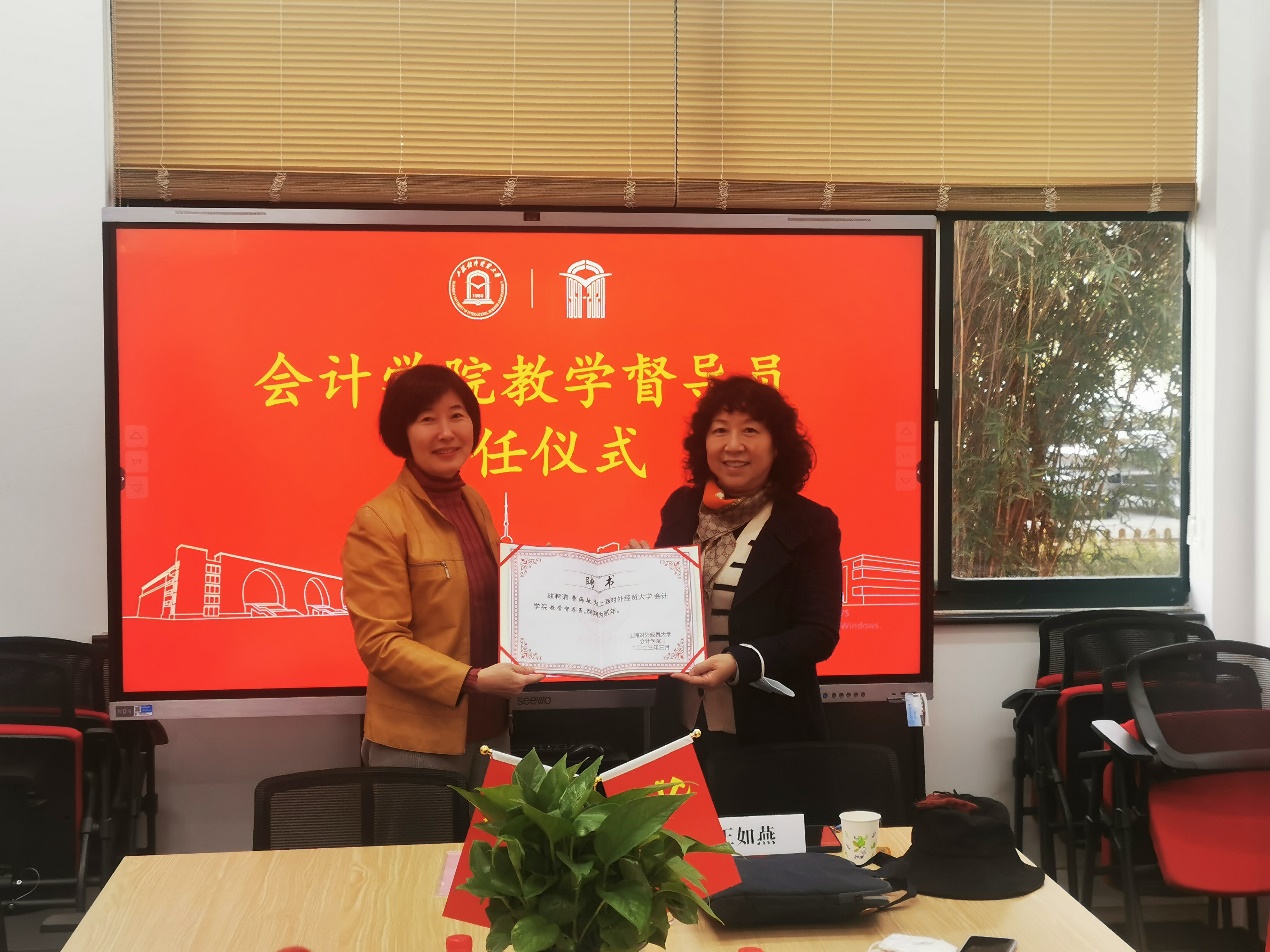 2023年3月15日上午,会计学院举行了院级教学督导聘任仪式暨教学督导工作会议,院长裴瑱出席聘任仪式并讲话,副院长杨慧辉、副院长孙淑伟、审计系主任王如燕参加了会议。会议由学院党委副书记施毅婷主持。