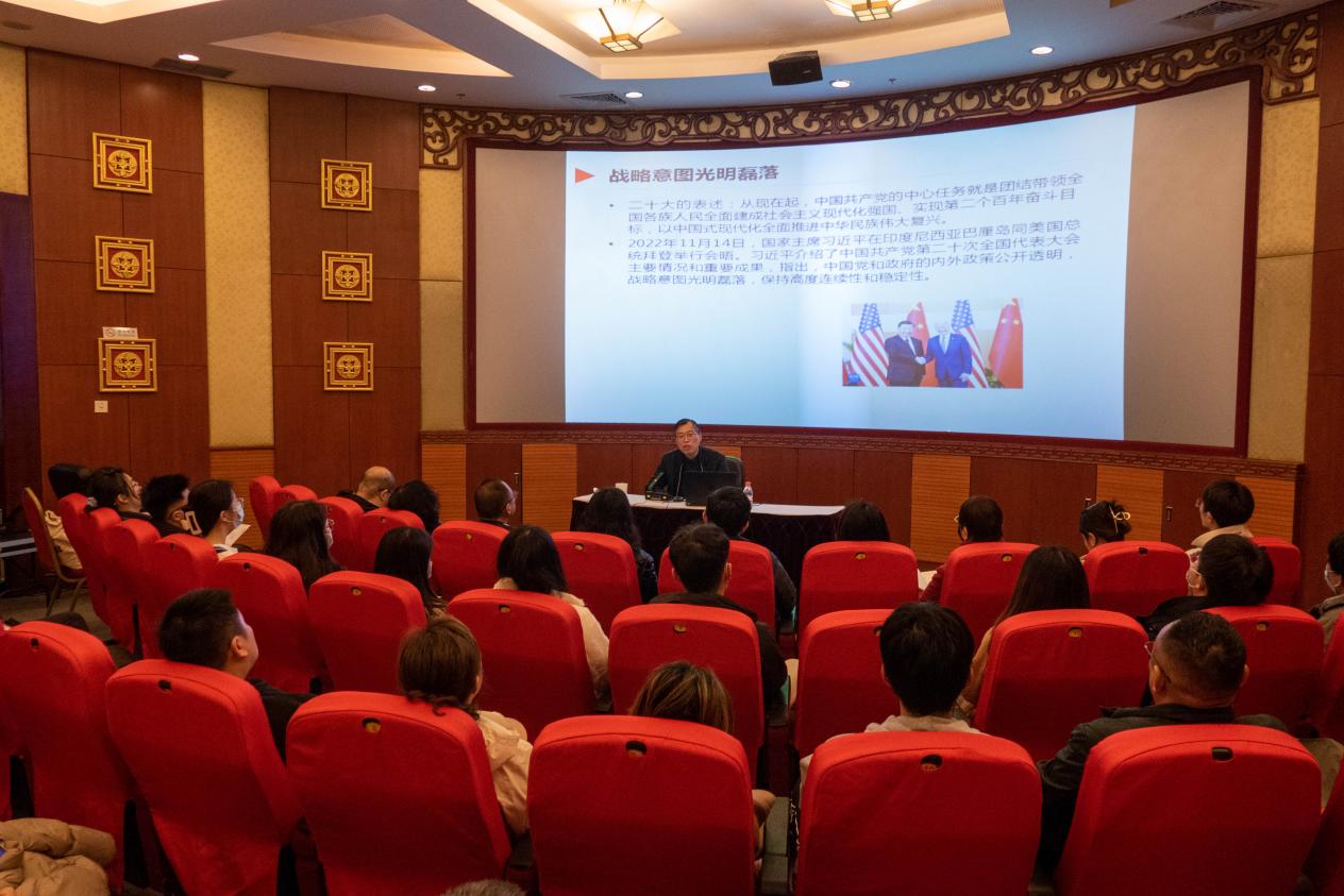 上海话剧艺术中心党委副书记、纪委书记钱跃主讲了《中国式现代化:强国建设、民族复兴的康庄大道》的专题党课。他从现代化之问出发,结合中国发展的历史和现实情况、党的二十大报告内容等,深入阐述了中国式现代化的五大特征。他提出现代化并不是只有西方制度模式这一条路,要破除“现代化=西方化”的路径依赖和思维方式,中国式现代化需要跨越“发展陷阱”,共同富裕是现代化的必由之路,中华民族伟大复兴进入了不可逆转的历史进程。