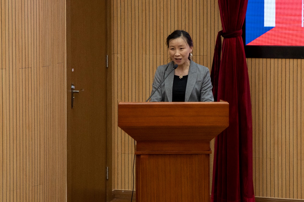 杨慧辉宣读必赢626net入口首页第十五届财会精英挑战赛决赛的晋级名单,并颁发晋级卡。