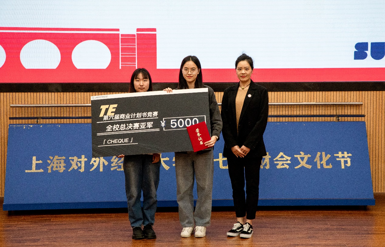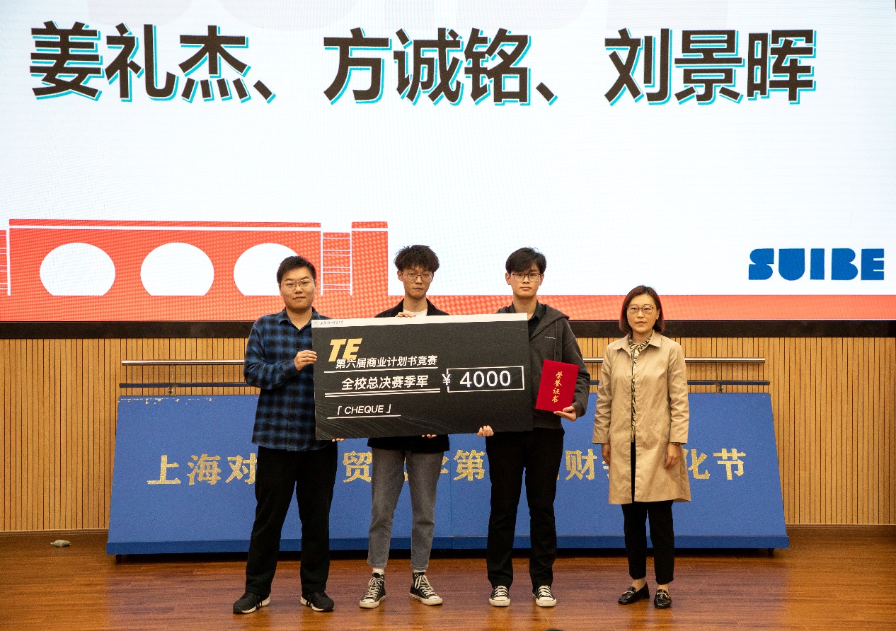 施毅婷宣读第六届TE商业计划书竞赛获奖名单,关印、虞娅娜、鲁瑛均三位老师分别为获奖队伍颁发奖状和奖金。