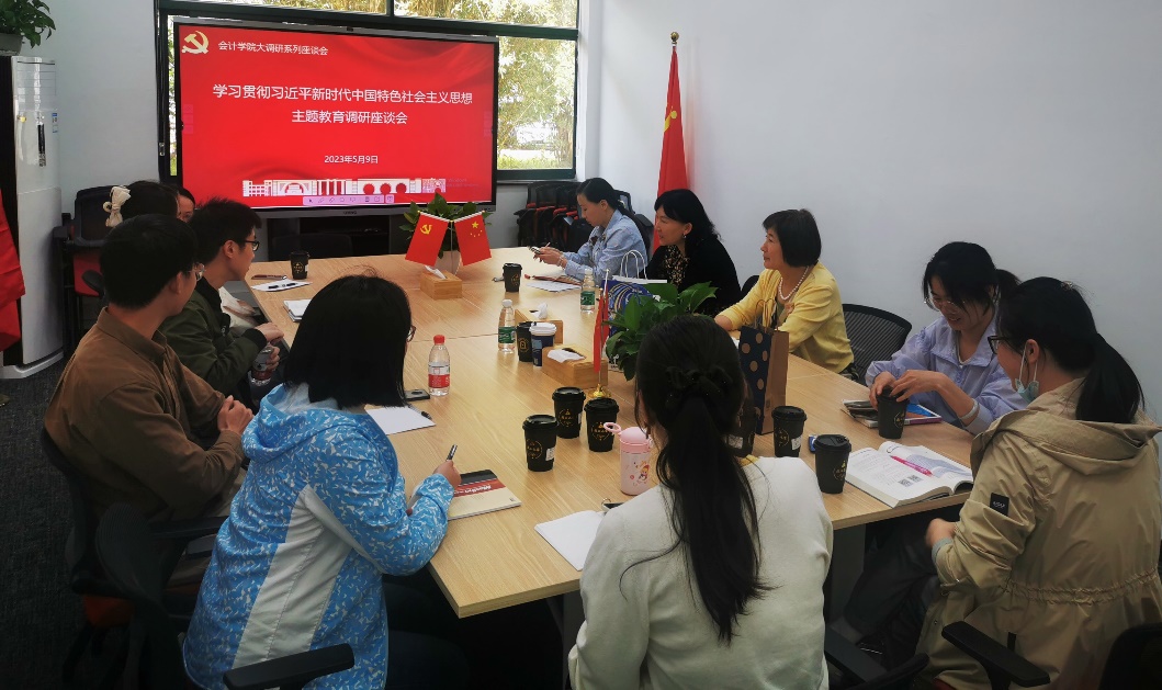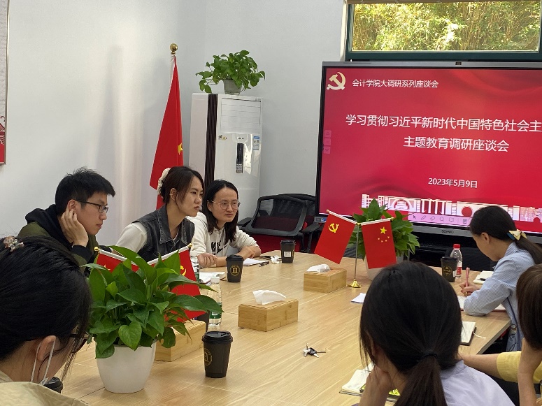 为贯彻落实习近平新时代中国特色社会主义思想,深入开展调查研究工作,会计学院于2023年5月9日13:30在博雅楼104召开青年教师座谈会,围绕如何提升学院课堂教学质量开展广泛调研,倾听问题,征求改进建议。会计学院党委书记、学校办主任张嵘、院长裴瑱、副院长杨慧辉、孙淑伟以及青年教师代表出席了座谈会。