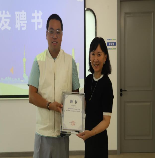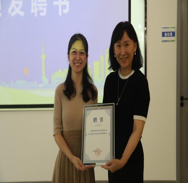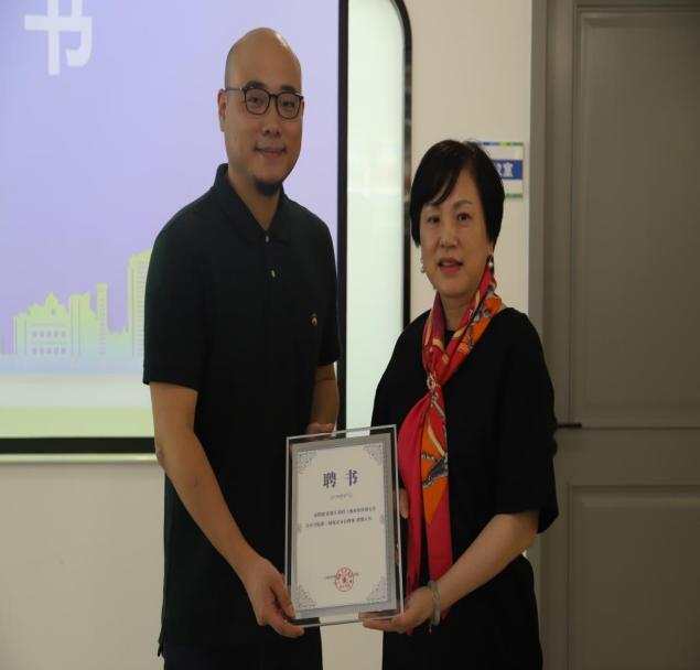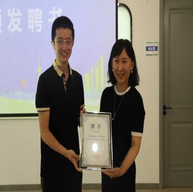 校友工作联络处处长晏琼和会计学院党委书记张嵘分别为新聘任的会计学院第二届校友分会理事颁发聘书。