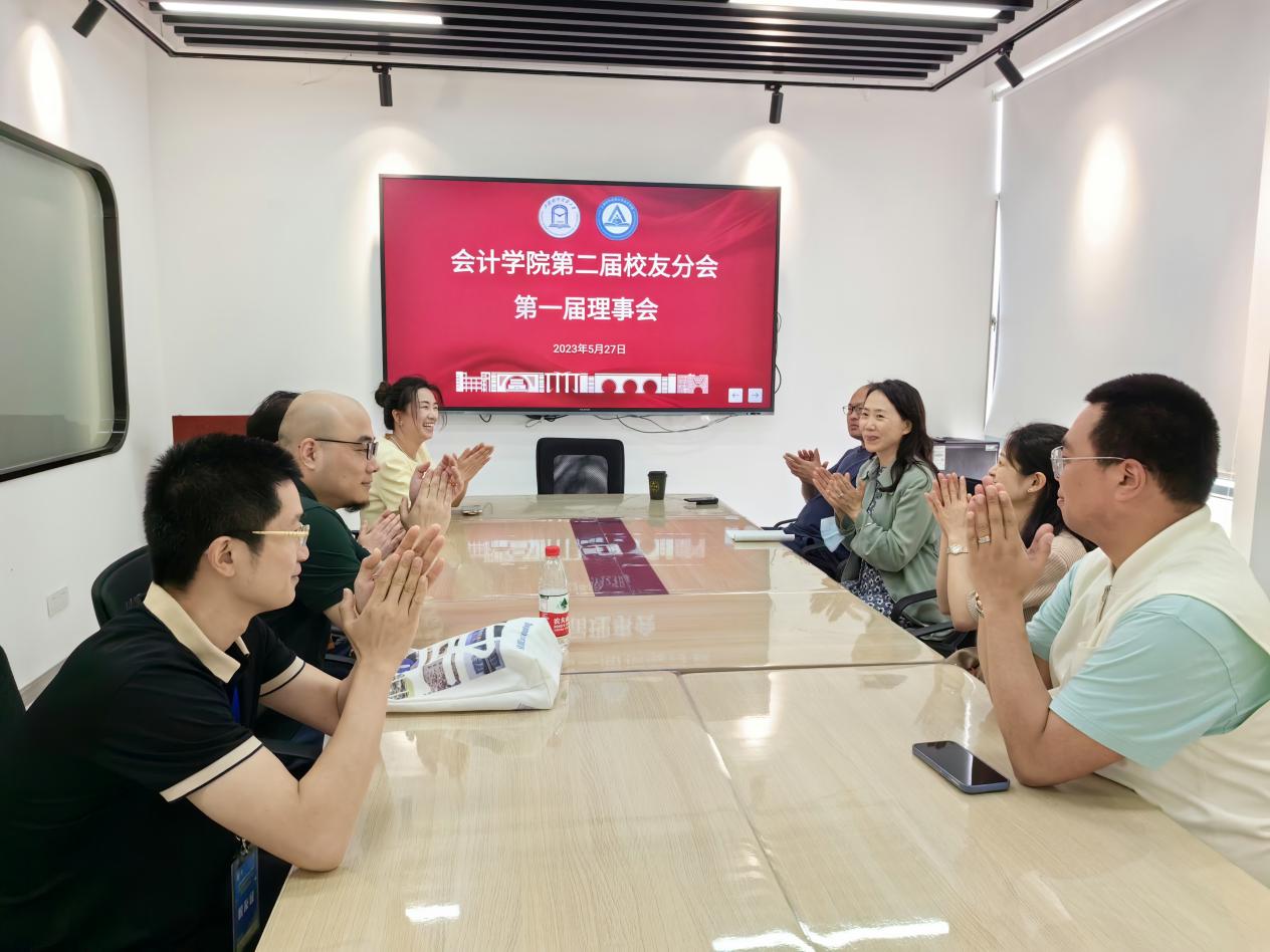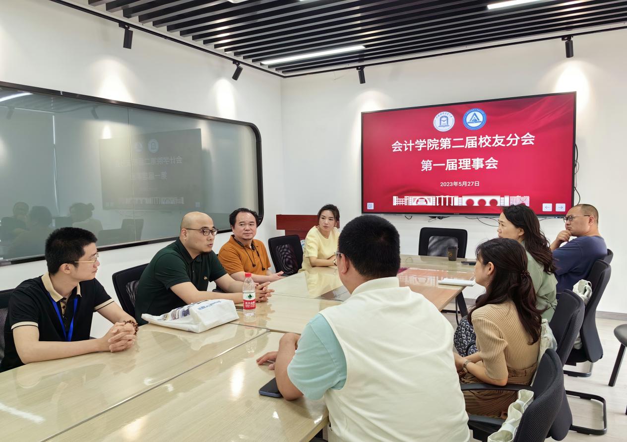 会计学院第二届校友分会召开了第一届理事会选举产生了会计学院第二届校友分会会长、副会长、秘书长和副秘书长,讨论确定了每位理事的工作分动,并畅谈了校友分会下一步工作计划。