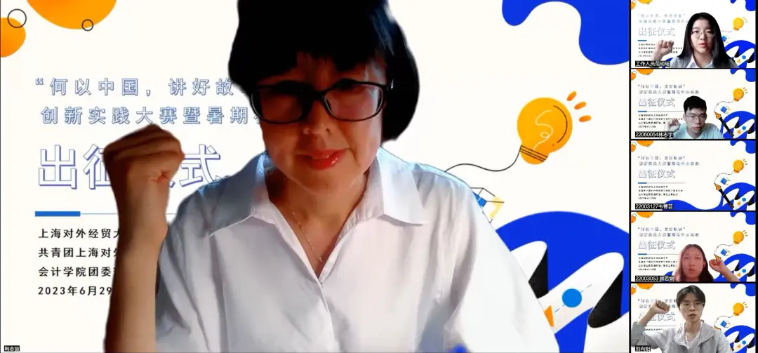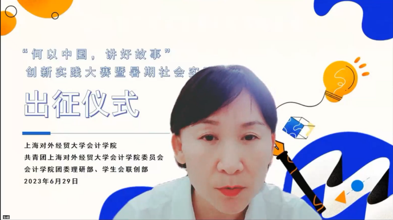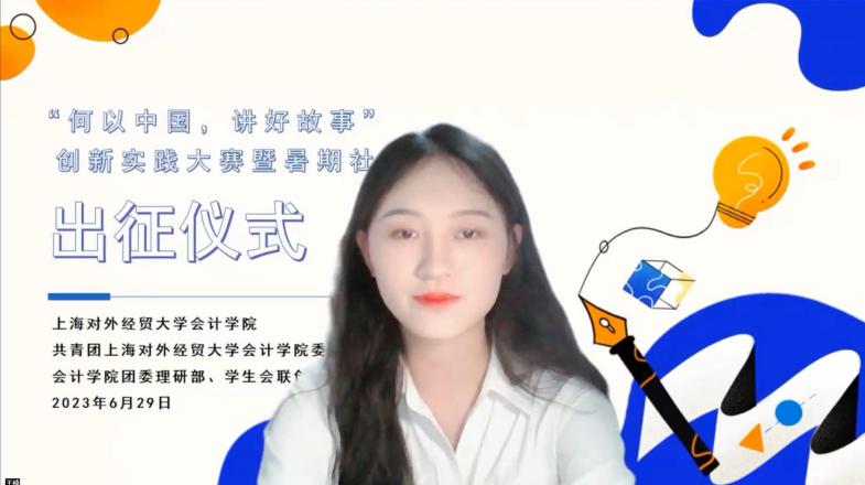 6月29日下午,会计学院“何以中国,讲好故事”创新实践大赛暨暑期社会实践出征仪式在线上举行。校党委副书记、副校长祁明,会计学院党委书记张嵘,会计学院院长裴瑱,会计学院副院长杨慧辉,校团委书记司徒力云,会计学院党委副书记施毅婷,全体指导教师以及全体参赛选手参加本次出征仪式。出征仪式由会计学院学生会联创部负责人虞天鸿主持。
