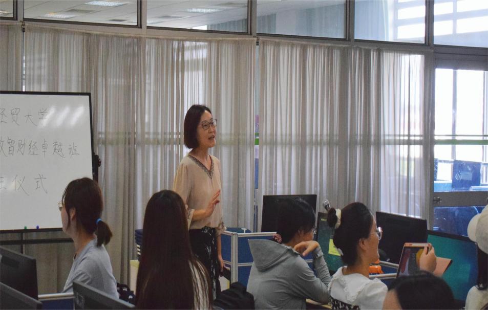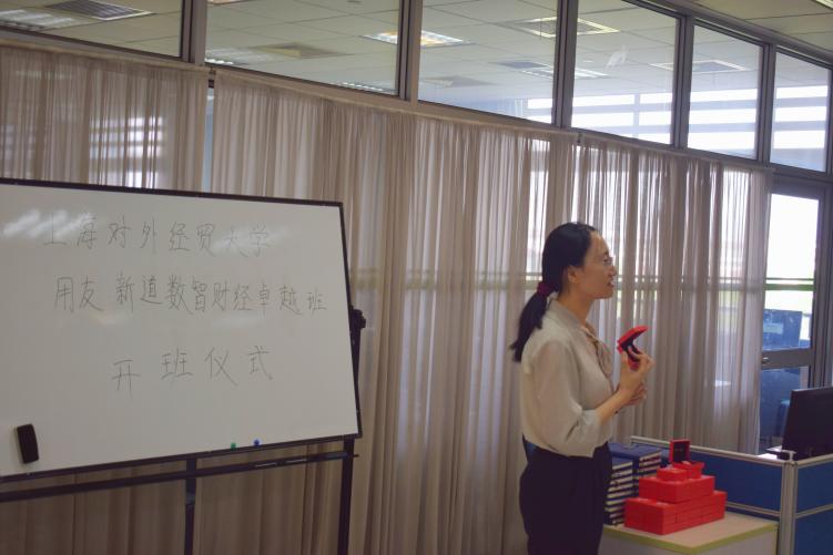 鲁瑛均老师对第二期“用友新道数智财会卓越班”的学生们表示热烈欢迎,并介绍了学院对本课程的建设目标及该企业班开设的重要性,她对一期企业班建设情况做了介绍并给予高度肯定,并结合第一期建设成果对本班同学未来的课程学习提出要求。