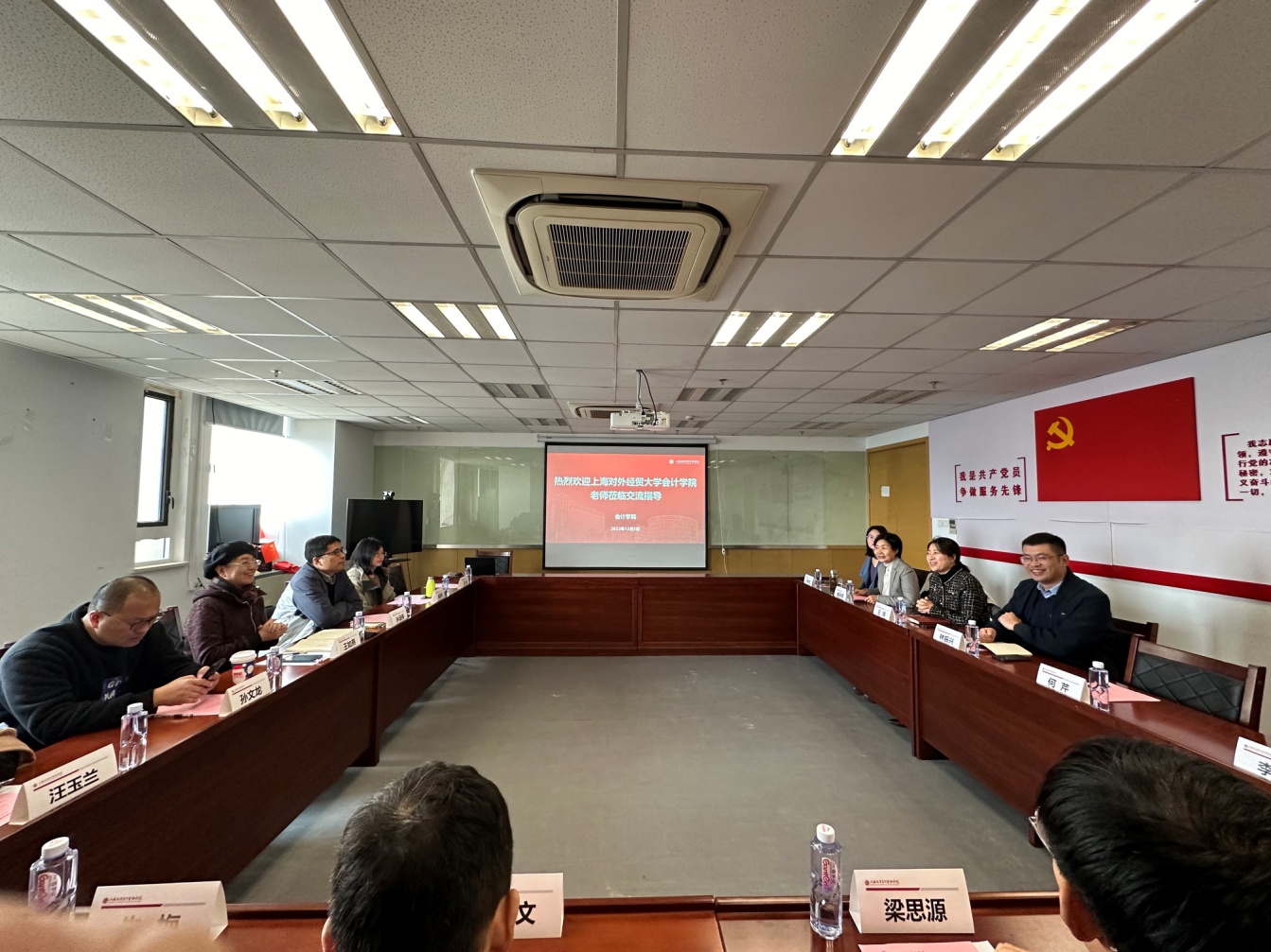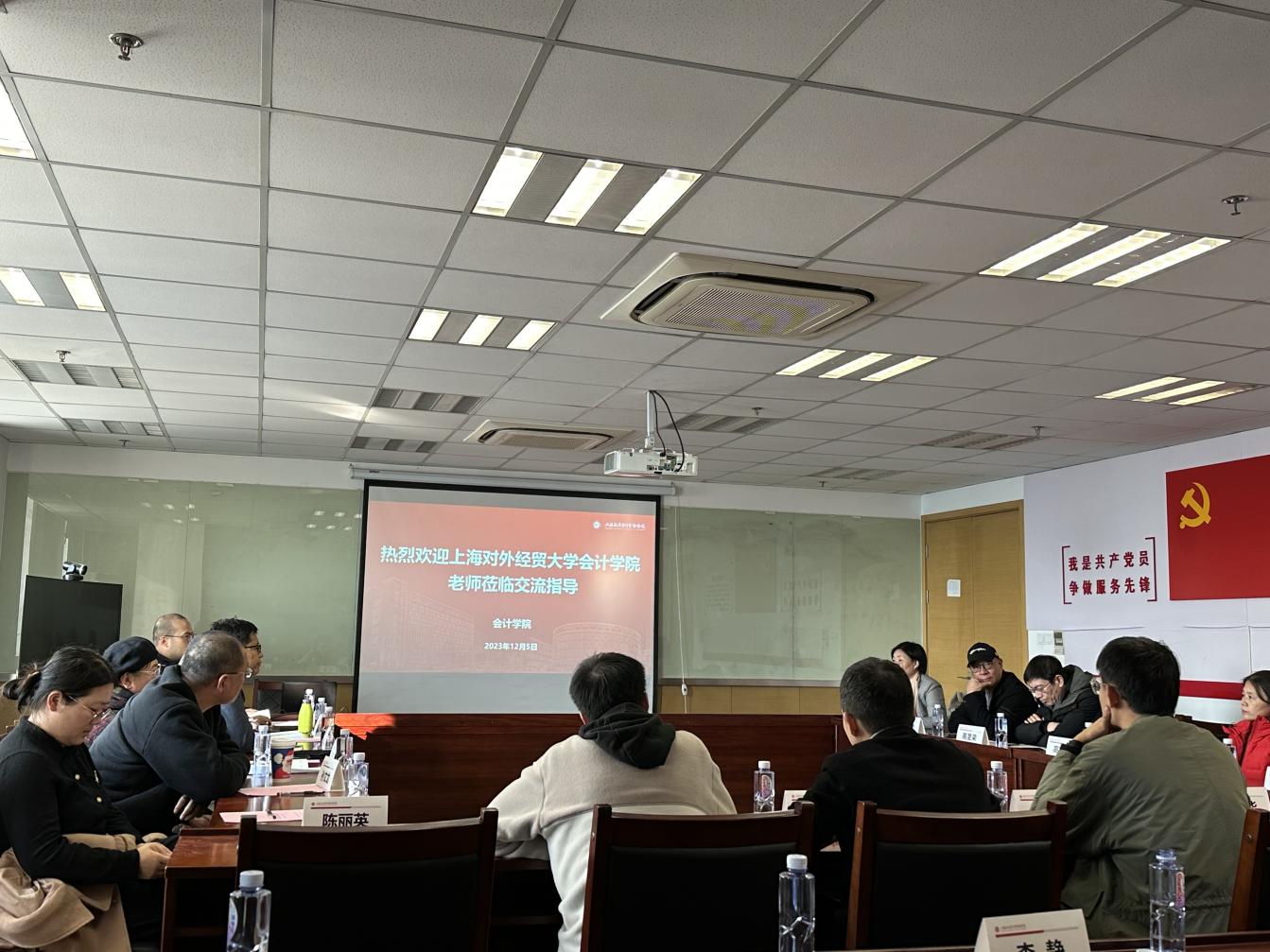 2023年12月5日下午,必赢626net入口首页会计学院副院长孙淑伟、审计系主任王如燕带领学院审计系部分青年教师以及辅导员刘向阳,前往上海立信会计金融学院会计学院开展教研交流活动。上海立信会计金融学院会计学院党委书记王婧、副院长林振兴、副院长何芹、审计系主任魏晓雁以及审计系教师队伍出席交流会。