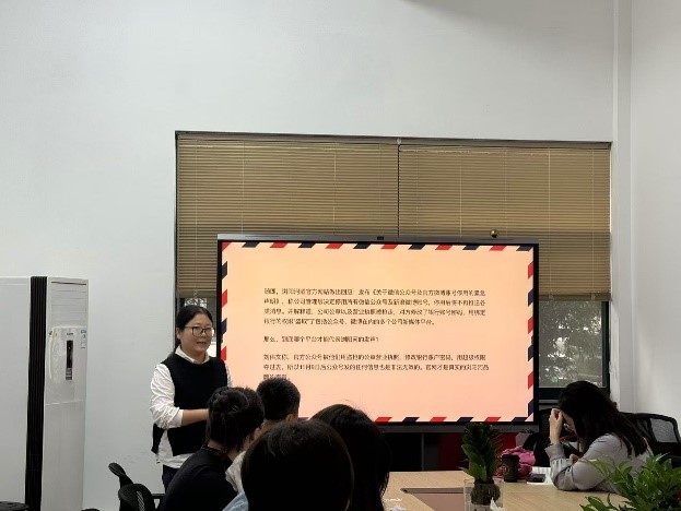 陈良银老师进行论文点评。陈老师从研究意义、指标构建、实证设计等方面进行了精彩点评,多位金融学院和会计学院教师分别从指标设计、机制检验、实证设计等方面与汪玉兰老师展开交流,提出论文的修改建议。