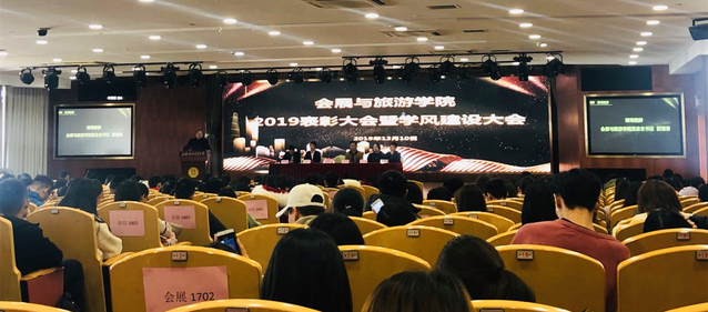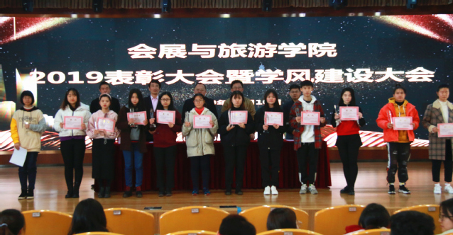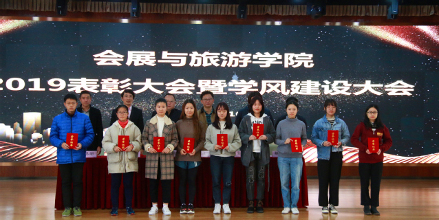 2019年12月10日中午,会展与旅游学院在信息楼507举办2019表彰大会暨学风建设大会。会展与旅游学院党总支书记武增勇、学院副院长刘少湃、副院长田纪鹏、旅游管理系系主任张兆琨、新生班主任蔡萌、辅导员以及学院全体学生(含预科生、本科生和研究生)参加了本次大会。大会由会展与旅游学院党总支副书记冯昕主持。会上分别对学院2019“年度之星”获得者、各类奖学金获得者、优秀团员优秀团干部以及优秀学生、优秀学生干部进行了表彰,并播放了风采展示视频。2019“学术之星”王博宇、“学习之星”涂存红作为获奖学生代表发言,分享个人在校学习、工作的经历、经验与感受。