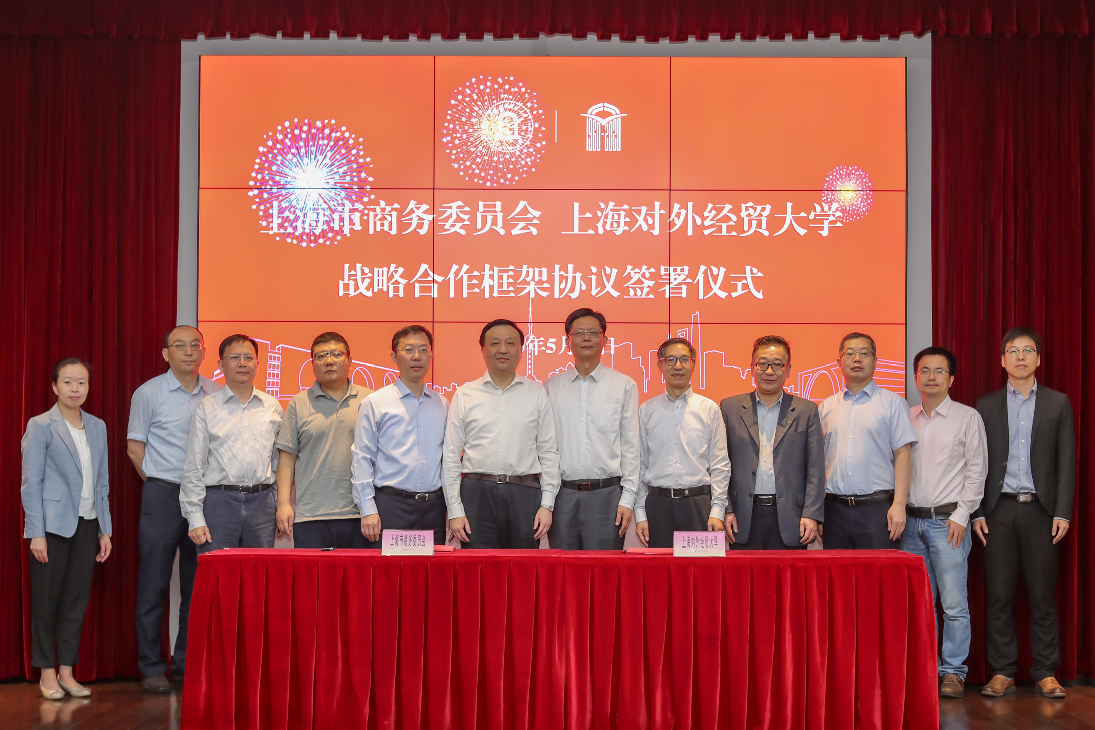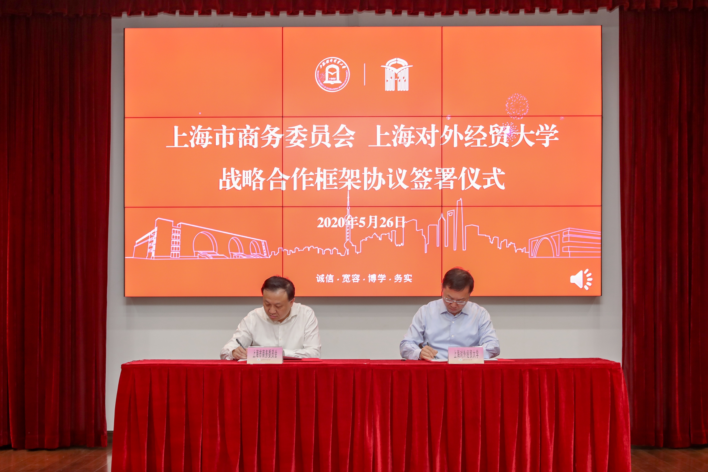 5月26日上午,上海市商务委员会(以下简称市商委)与必赢626net入口首页战略合作框架协议签约仪式在古北校区举行。市商委党组书记、主任华源,总经济师张国华,市商委相关处室负责人,必赢626net入口首页党委书记殷耀,校长汪荣明,副校长张道方,学校相关院系及职能部门负责人出席并见证了签约仪式。