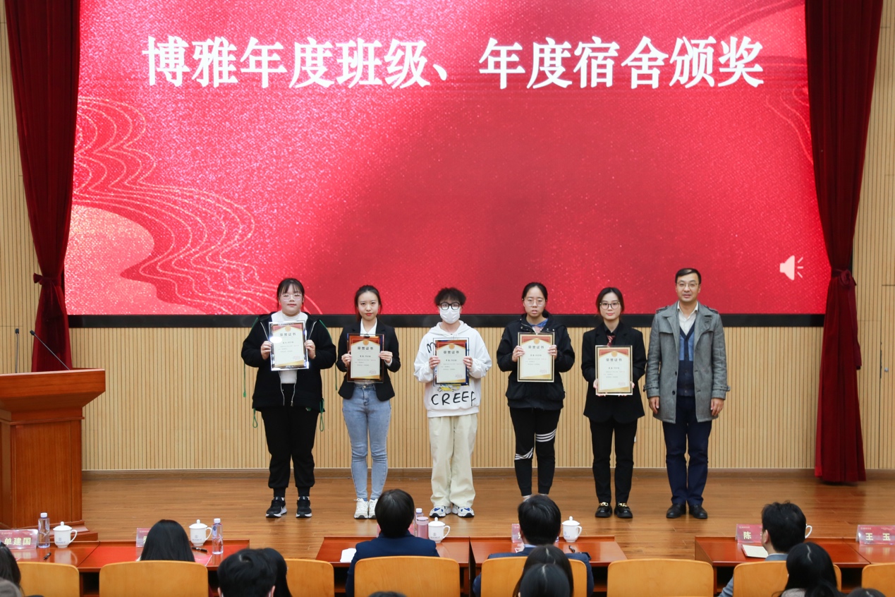 博雅年度获奖班级代表潘琳同学以《把牢“三全育人”的“方向盘”,锻造“三全育人”的“排头兵”》为题,从班风、学风建设角度切入,分享了英语2002班扎实推进“三全育人”建在班上的生动实践。