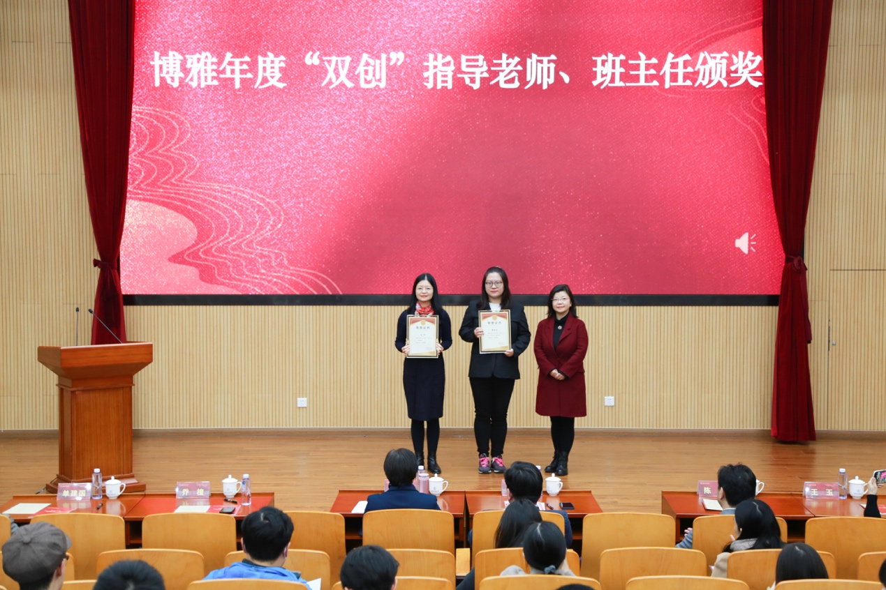 刘根春宣读国际商务外语学院2020-2021学年博雅年度“三全育人”系列获奖名单。