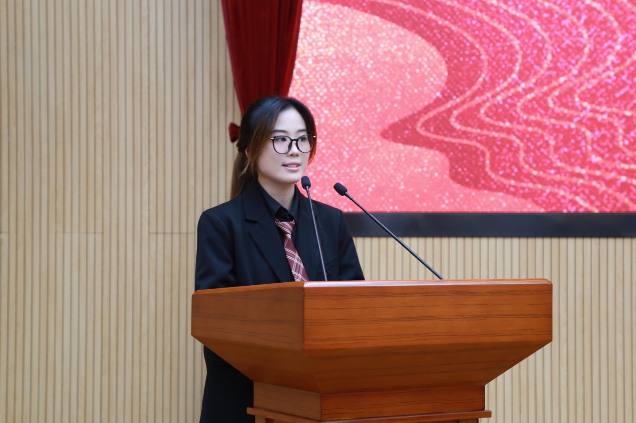 博雅“五一”劳动奖获奖代表郭净雯同学发言,她结合专业优势、创造性劳动、公益志愿等阐述了“用劳动精神投身于劳动实践”的必要性和重要性,号召同学们知行合一,不断在劳动中明确初心使命,为讲好中国故事贡献个人力量。