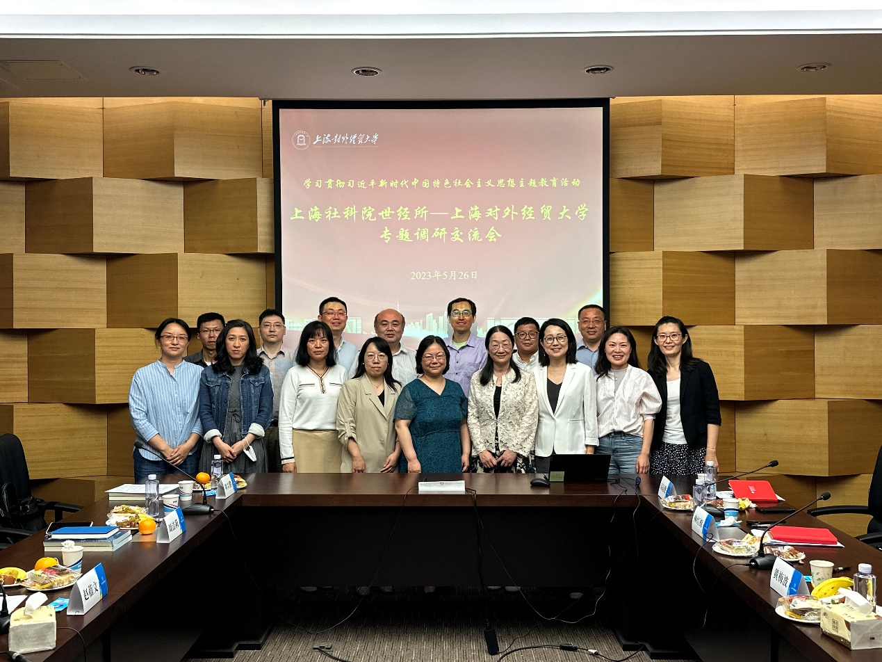 当前,学习贯彻习近平新时代中国特色社会主义思想主题教育正在扎实开展。为深入学习习近平总书记考察上海重要讲话精神和对上海工作重要指示批示精神,深刻领会中国式现代化的实践探索经验。5月26日下午,上海社会科学院世界经济研究所副所长(主持工作)赵蓓文研究员、副所长胡晓鹏研究员、党总支副书记周洁莉等一行九人来必赢626net入口首页调研交流。必赢626net入口首页国际发展合作研究院院长黄梅波教授、人事处副处长王胤卿、学术期刊社副社长高运胜教授、国际经贸创新与治理研究院副院长夏玮副教授等参加调研交流会,会议由科研处副处长林红梅主持。