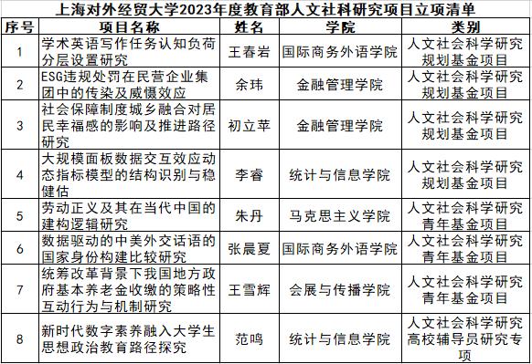 学校获批8项2023年度教育部人文社科研究项目