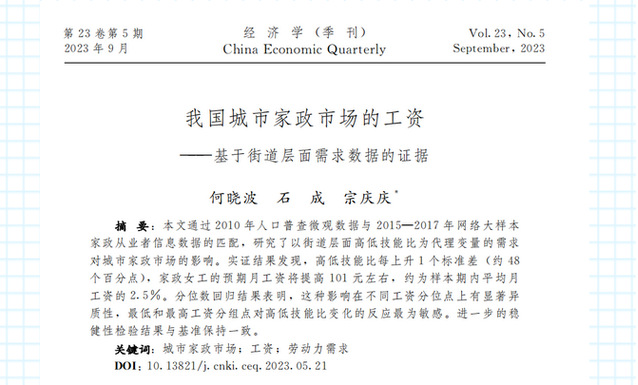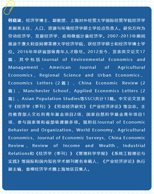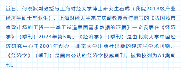 学术前沿|何晓波副教授合作论文在经济学国内权威期刊《经济学(季刊)》发表