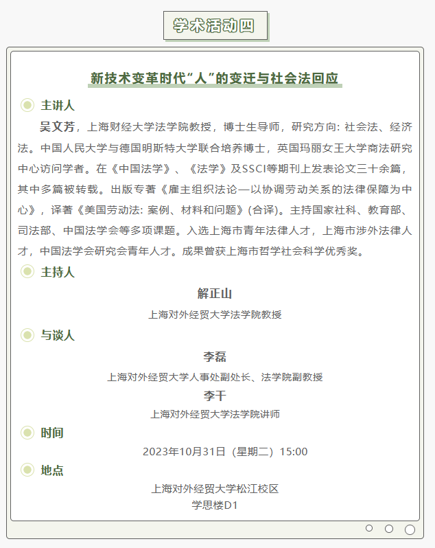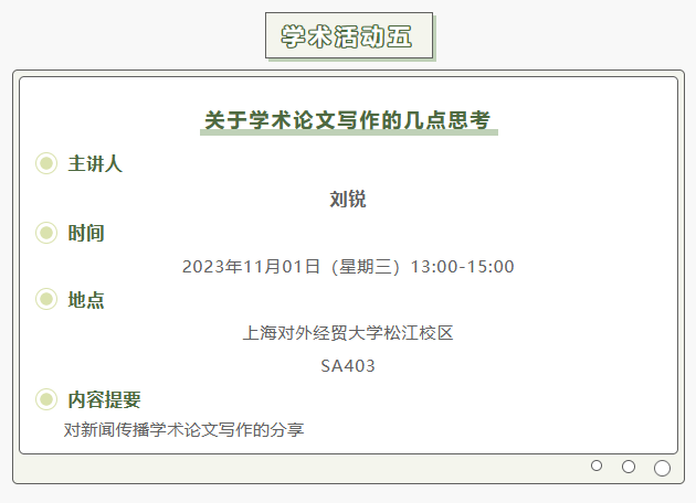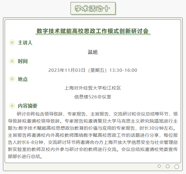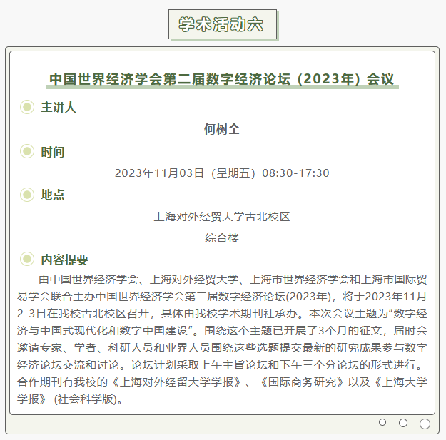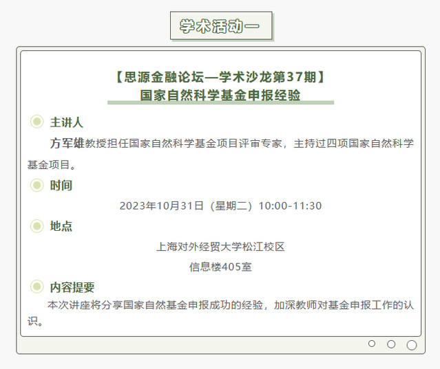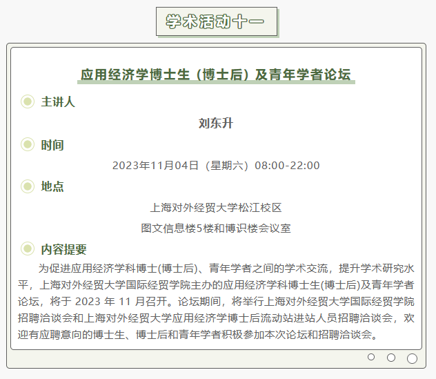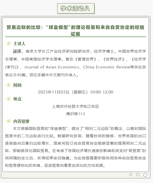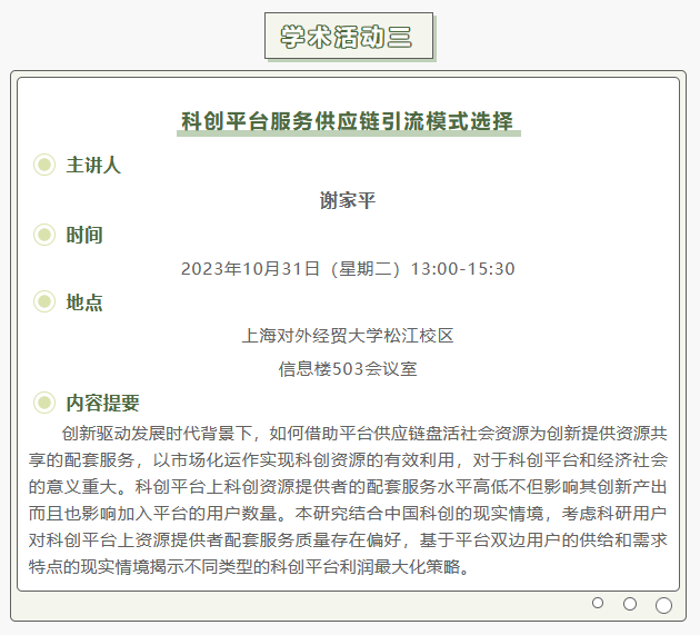 【上经贸大·科研】第七周学术活动预告