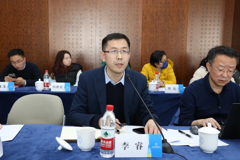 统计与信息学院副院长李睿以“跨学科交叉推动科研工作的探索与思考”为题,从跨学科交叉的背景、交叉研究的探索实践、开展路径三个方面做了工作汇报,他分享了学院交叉推动科研工作的经验,认为要加强交叉意识培养,建立评价机制。