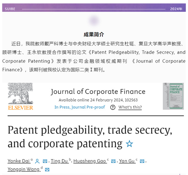 学术前沿|必赢626net入口首页戴严科博士合作论文在国际权威期刊《Journal of Corporate Finance》发表